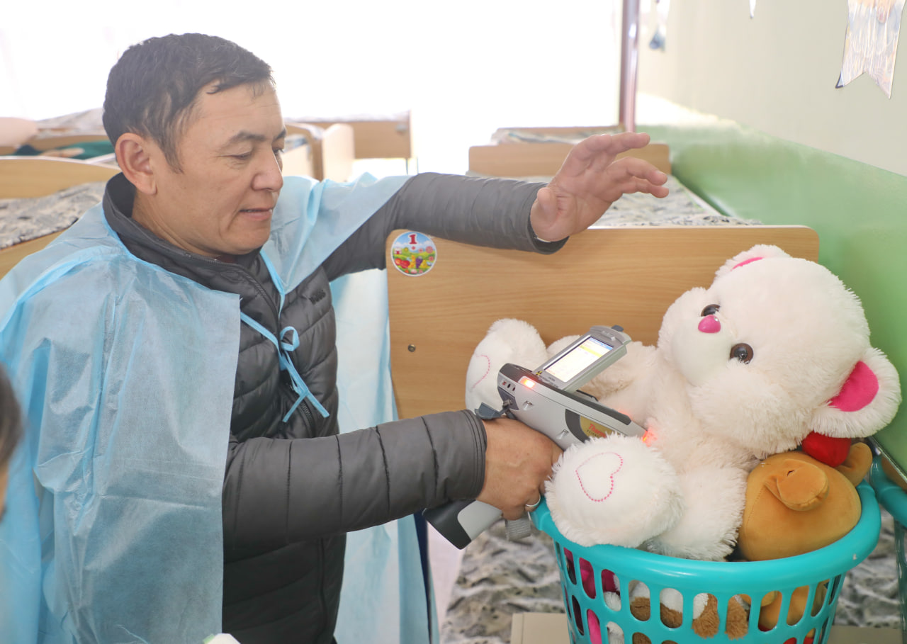 In November 2025, during a pilot visit to Kant, employees of the Department of Disease Prevention and State Sanitary&Epidemiological Surveillance of the Ministry of Health of the Kyrgyz Republic collected data in five kindergartens to determine the lead content in paints used for playground decoration. Samples were collected at pilot sites and analyzed using a special device – a Thermo Scientific Niton XL3t 700S portable X-ray fluorescence analyzer.